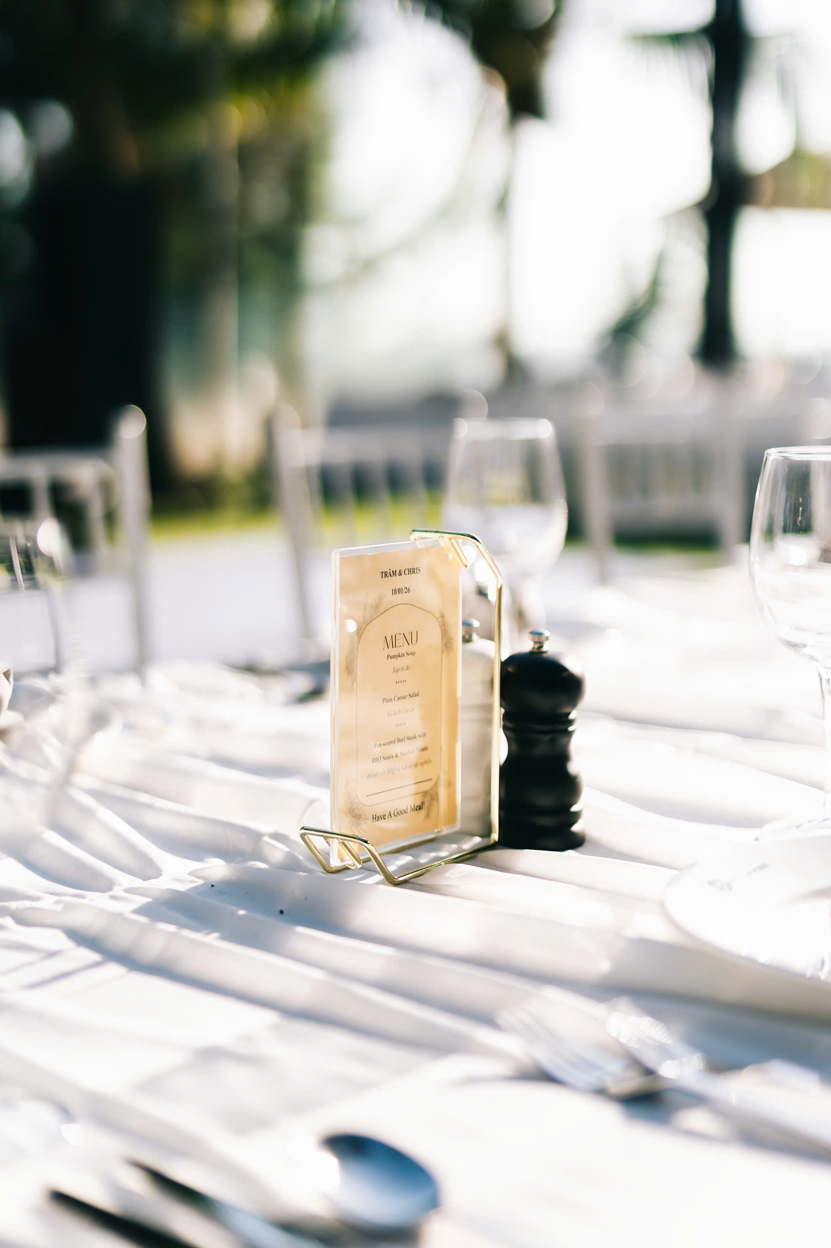 Không gian biển rộng mở kết hợp trang trí tinh tế tạo nên khung cảnh cưới ấn tượng và đầy cảm xúc.